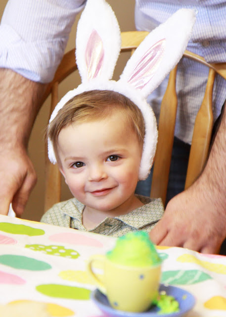 Keaton was not feeling the best, so this is about all we got! He slept on Daddy throughout the entire Tea Party part....and woke up just in time to have a cookie before we decorated eggs!